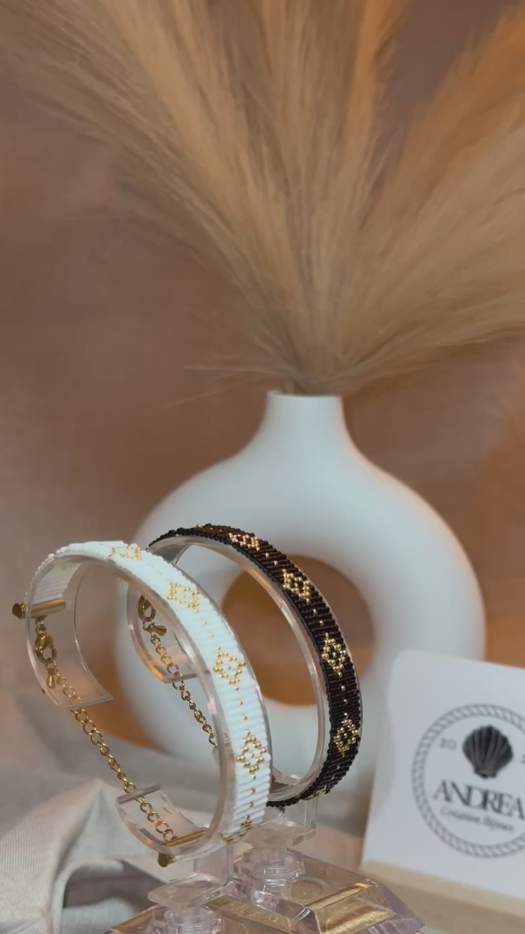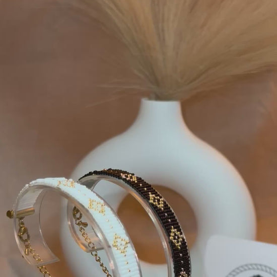 Le bracelet blanc, lumineux et délicat, évoque la pureté et la sérénité du Yin. Son motif doré ajoute une touche d'éclat subtil et raffiné.